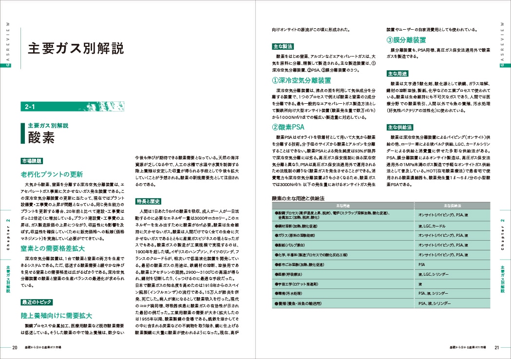 産業ガス市場を事業特性、用途、製法、供給法、企業、地域の各面から解説し他業界基礎知識の総覧。